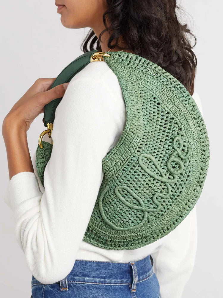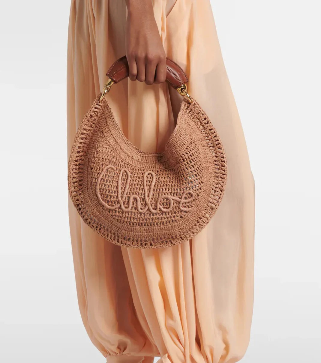 Elevate your warm-weather wardrobe with Chloe's Banana Raffia Sac — crafted in handwoven raffia with smooth calfskin trim.